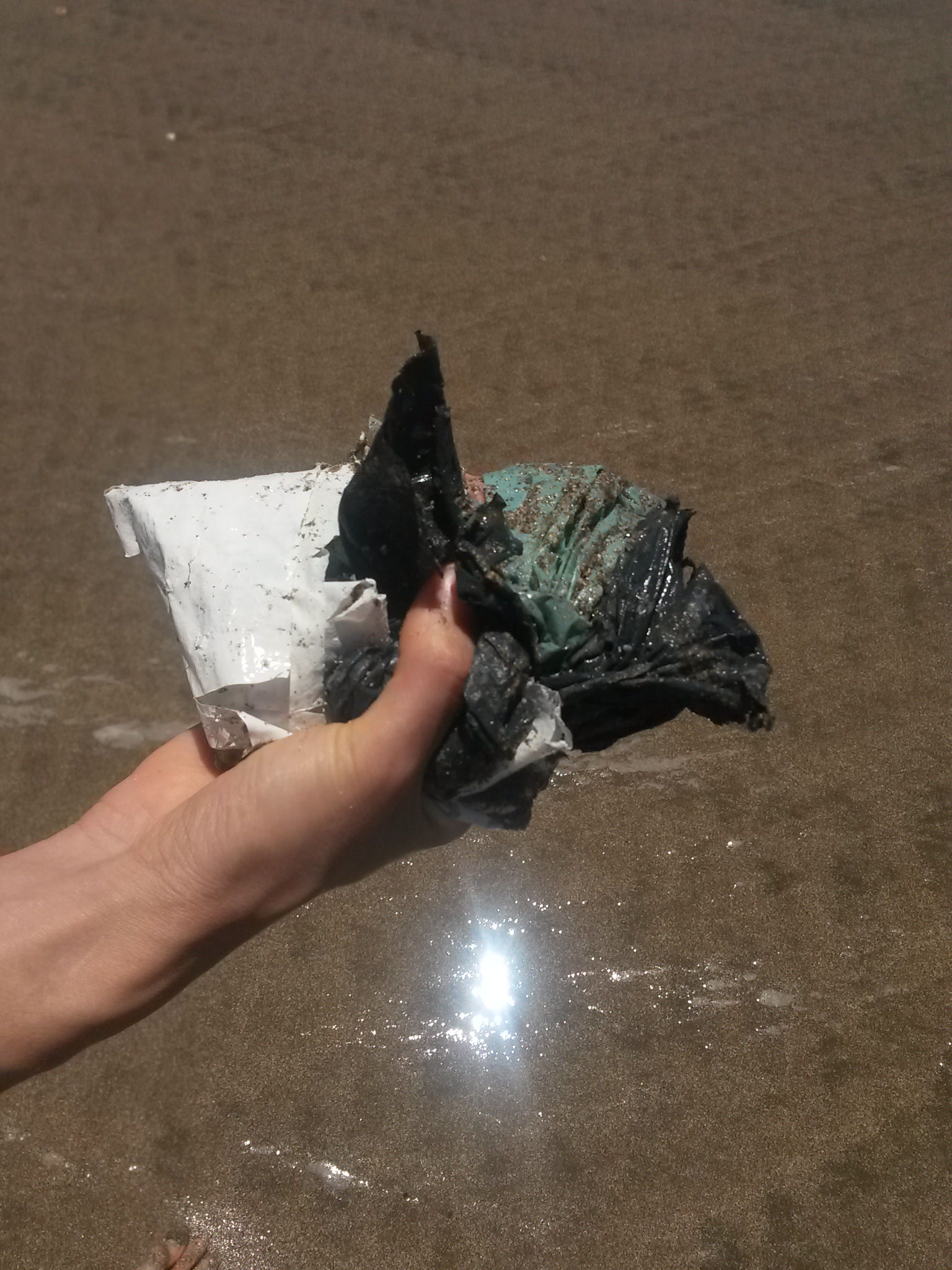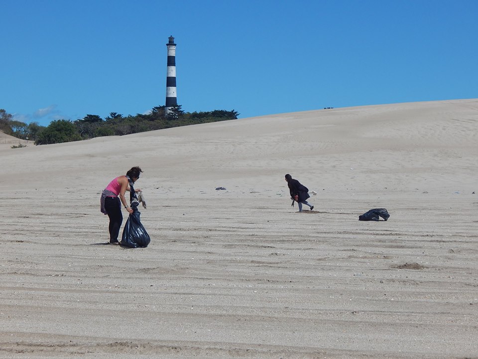 IMAGEN: limpieza en el Faro Querandí. Guardaparques y vecinos. Se llenaron alrededor de 20 bolsas con basura.