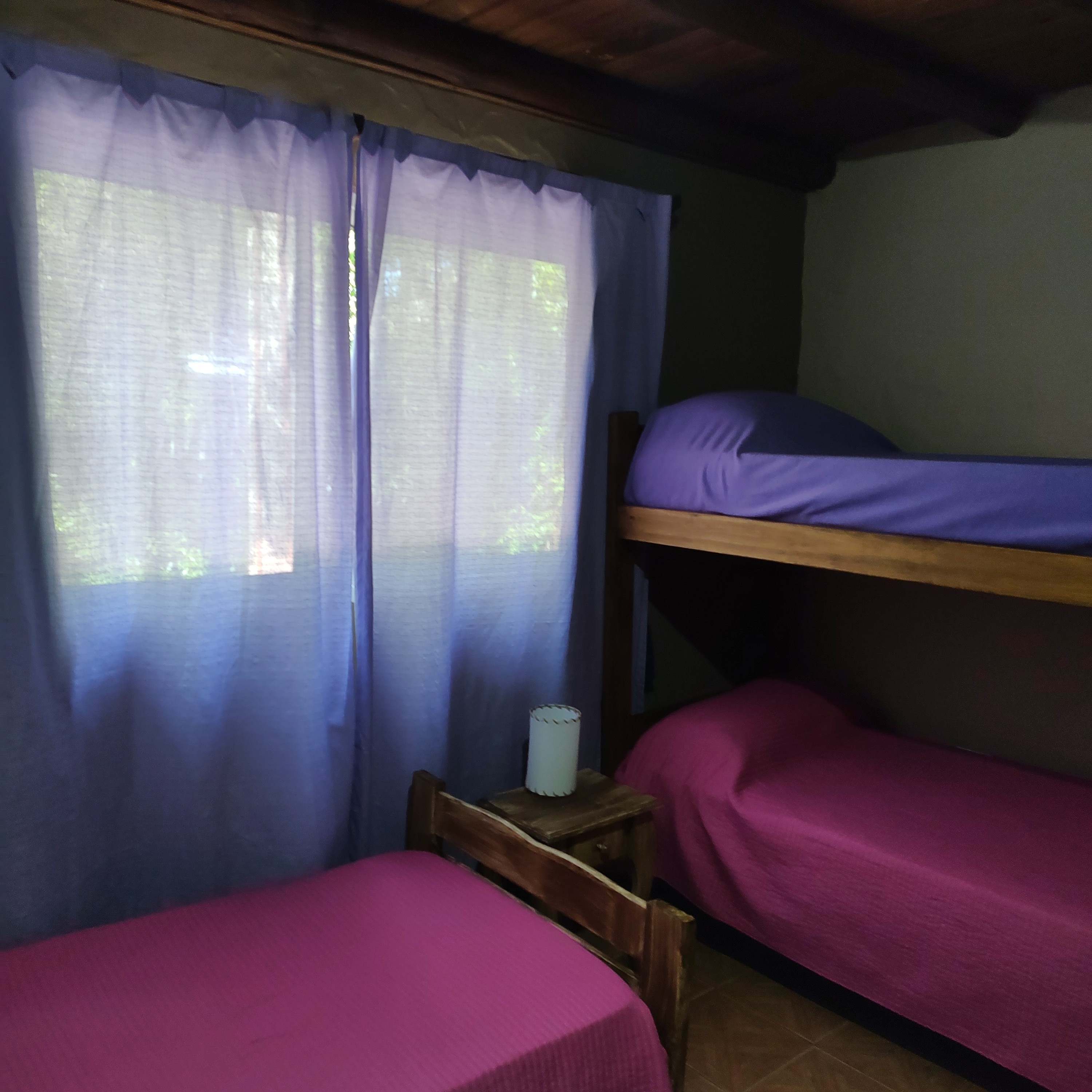 Este dormitorio tiene somier 2plaza y media, ropero,cómoda, mesas de luz, aire acondicionado, cortinas black cout, este dormitorio es un entre piso que balconea la cocina comedor es amplio y alto por ende tiene privacidad.. La parte baja se encuentra el 2do dormitorio con 2 camas de 1 plaza, ropero y mesa de luz.