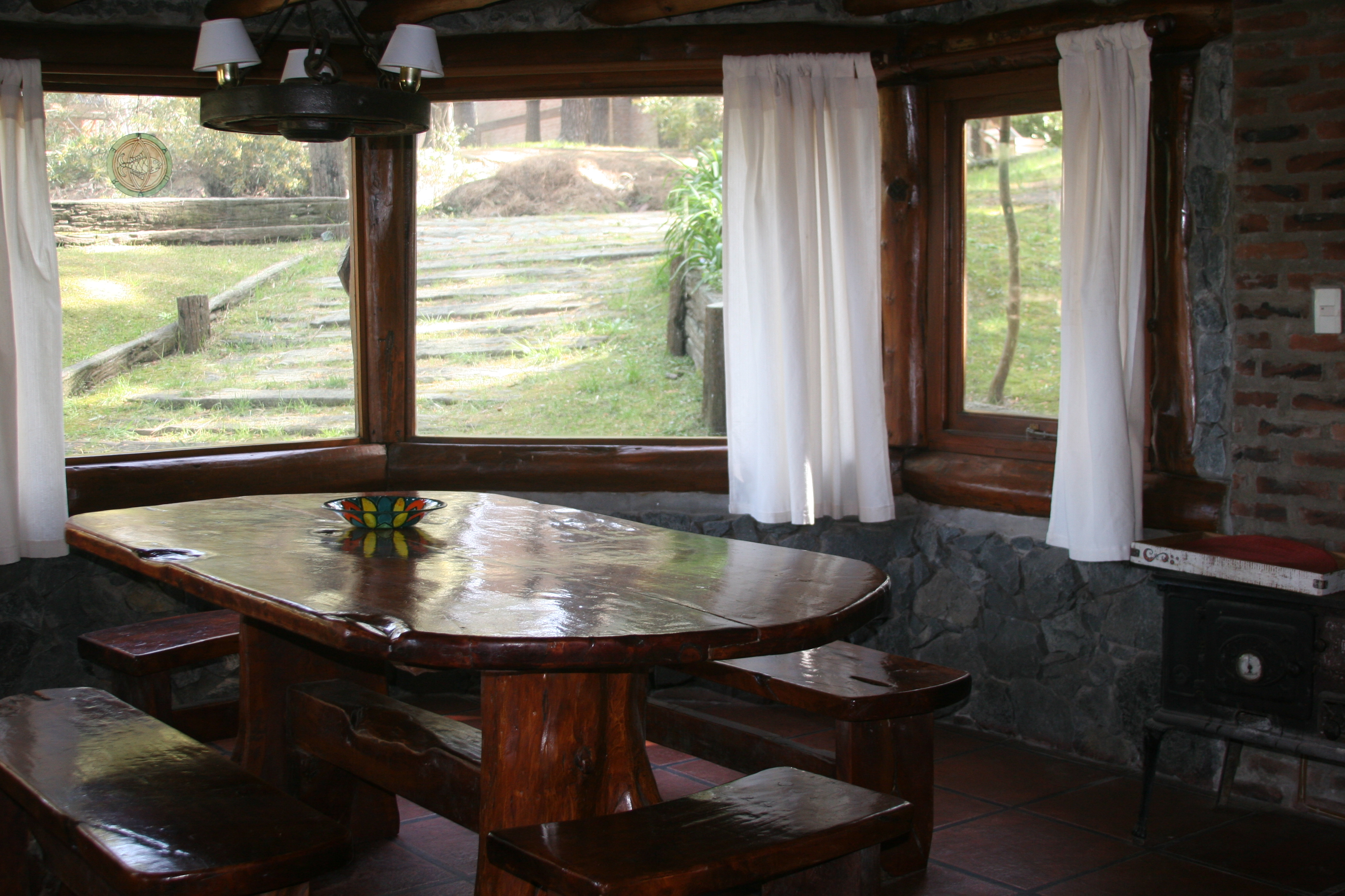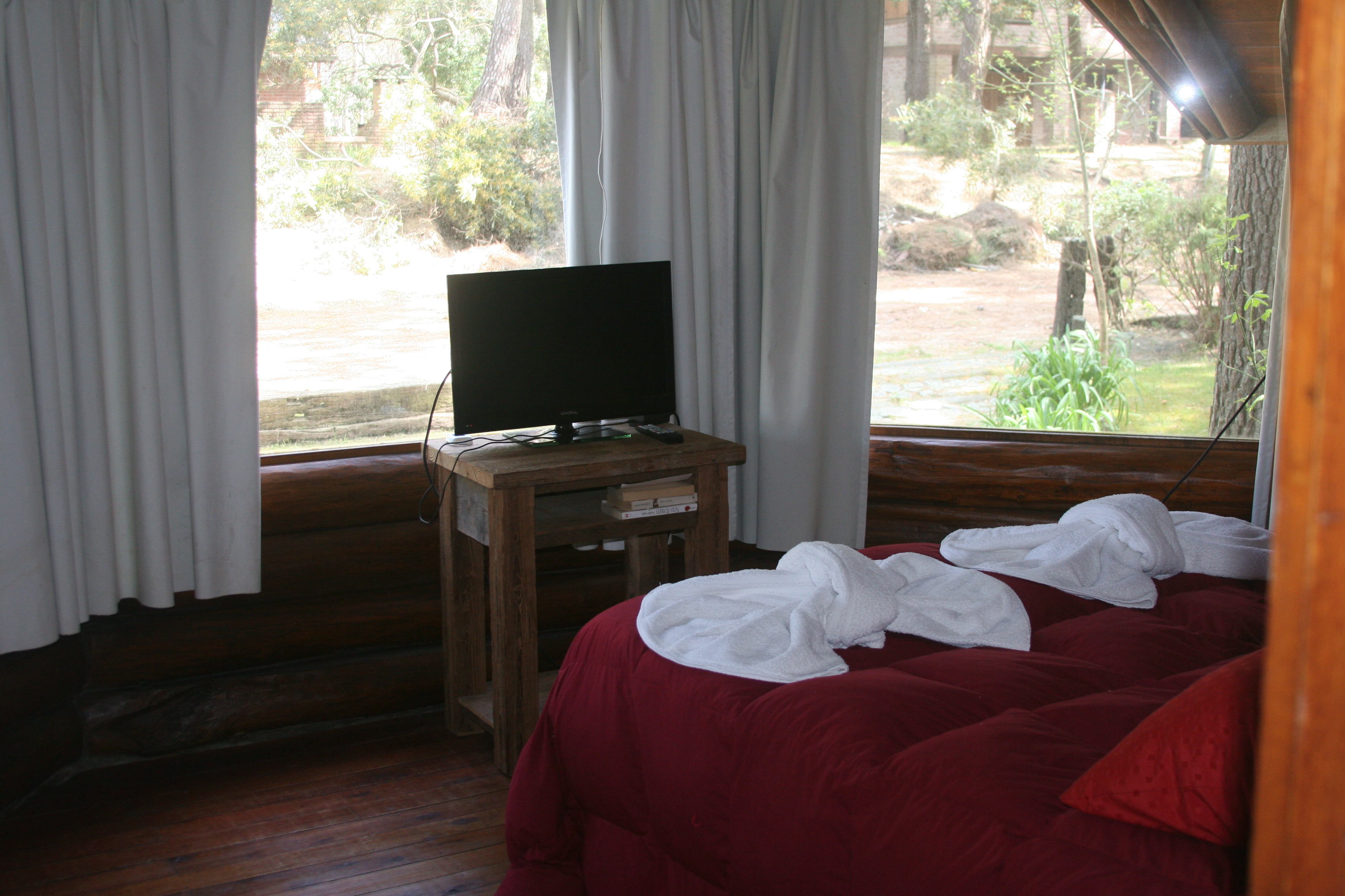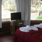 Contamos con dos cabañas y dos departamentos para ofrecerle, con un diseño rústico, de troncos artesanales, tejas negras y piedra azul.