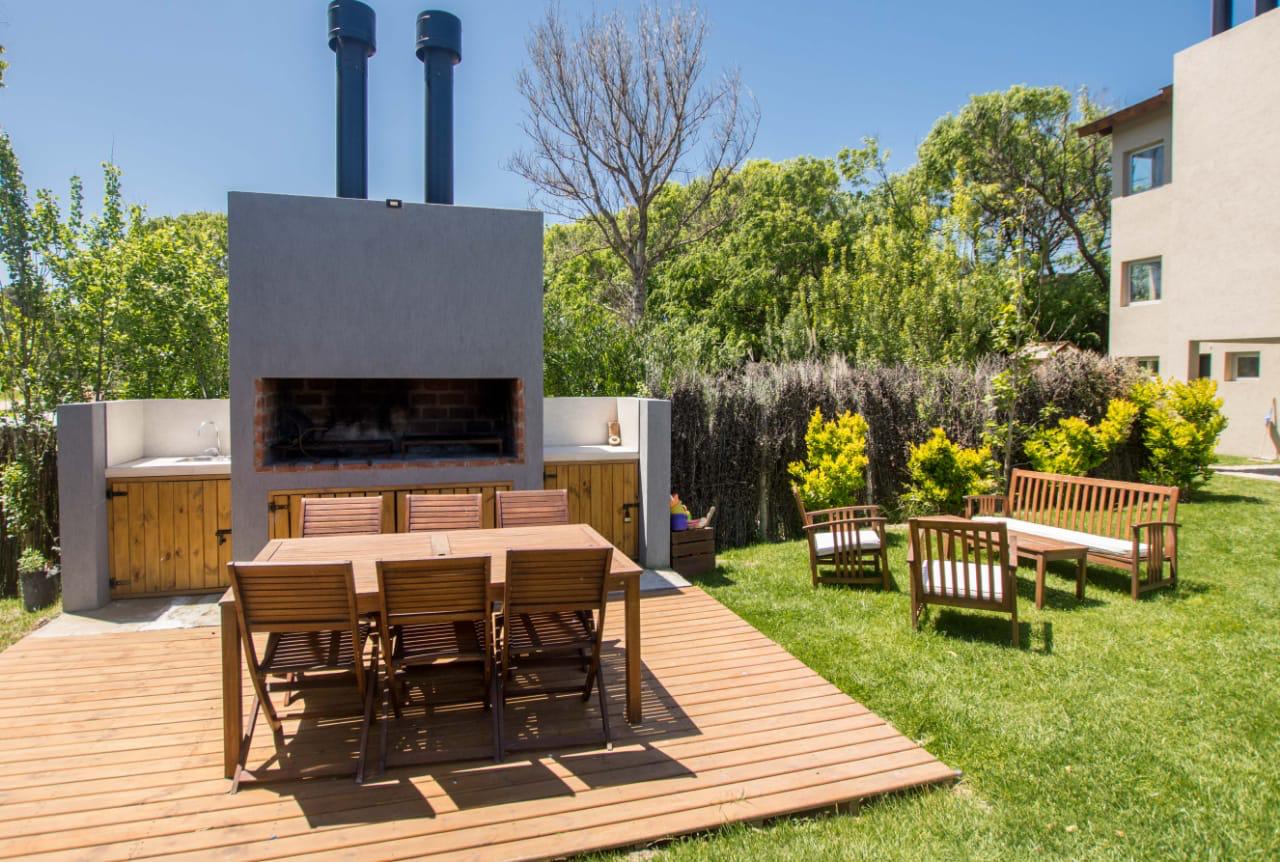 Planta baja:dormitorio principal en suite con jacuzzi para dos personas, blackout con doble cortinado,ventilador de techo. cocina completa, freezer, microondas, cafetera, tostadora etc toilette, living con hogar a leña,tv ,lcd dos futones de dos plazas.