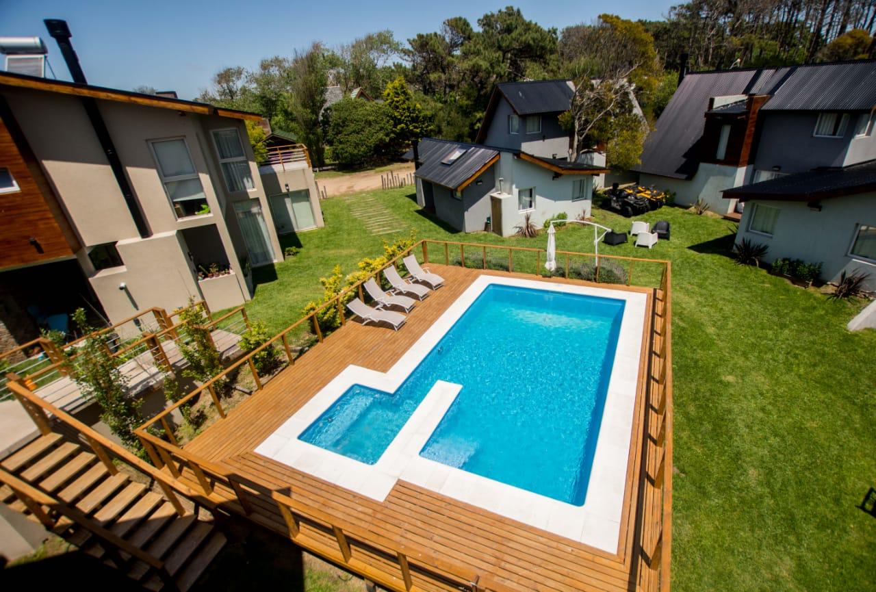 El complejo está ubicado en pleno bosque de Mar Azul, cuenta con 4 cabañas con capacidad de 2 a 9 personas, con todos los servicios y comodidades para que disfrutes de tus mejores vacaciones con el sonido del mar.
