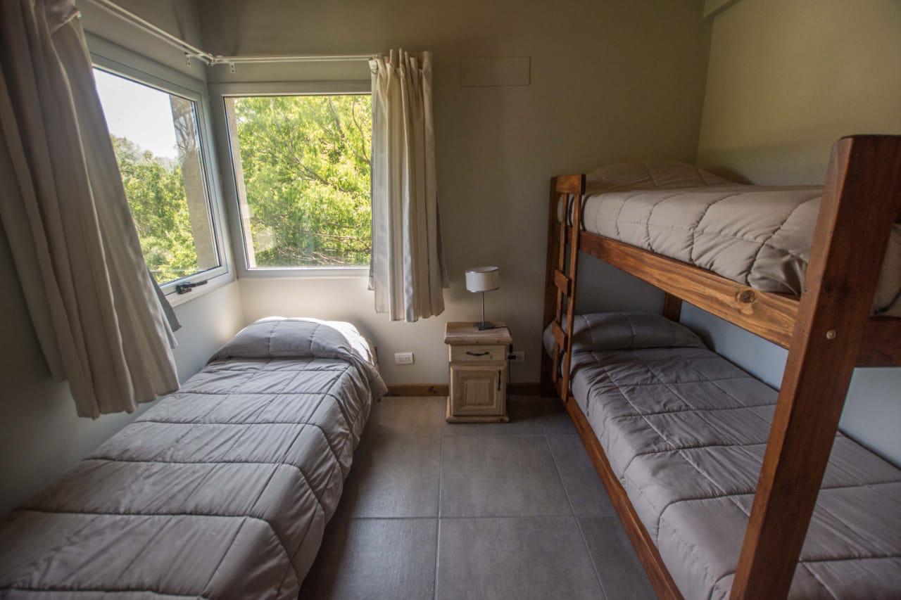 Planta Alta: dormitorio principal,con sommier 2 ½ pl blackout con doble cortinado,placard, ventilador de techo, dormitorio con dos camas y un carrito, ventilador de techo, baño completo con ducha escocesa.