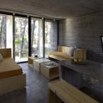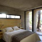 Escondida es una casa de hormigón, totalmente vidriada en su frente, con tabiques que varían su posición permitiendo vistas lejanas y a la vez protegiendo parcialmente de las miradas. Los ambientes que dan al frente son el living y los dos dormitorios, desde los tres ambientes se puede acceder a un deck-balcón ubicado en el frente de la casa dado que cada uno tiene una puerta ventana y de ésta manera los comunica con el bosque. Cada cama tiene almohadas, mantas de polar y cobertores. Ambos cuentan con cómodo placard.