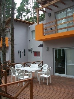 - Planta Alta: Dos dormitorios, el principal con balcón y somier, matrimonial, otro dormitorio con dos somier de 1 plaza y un baño completo. En la parte baja se encuentra la cocina, comedor y living integrados 1baño toalet- En el exterior dispone de un deck con parrilla mesa y sillas.