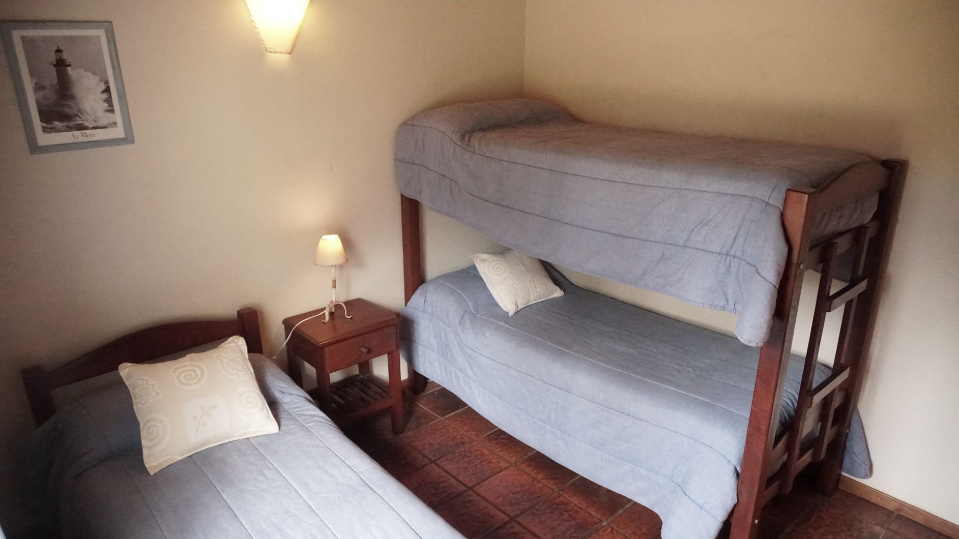 Dormitorio principal con sommier queen y cofre de seguridad. Estar comedor de 7x5 m. Segundo dormitorio con tres camas. Deck con parrilla de uso exclusivo de cada residencia.