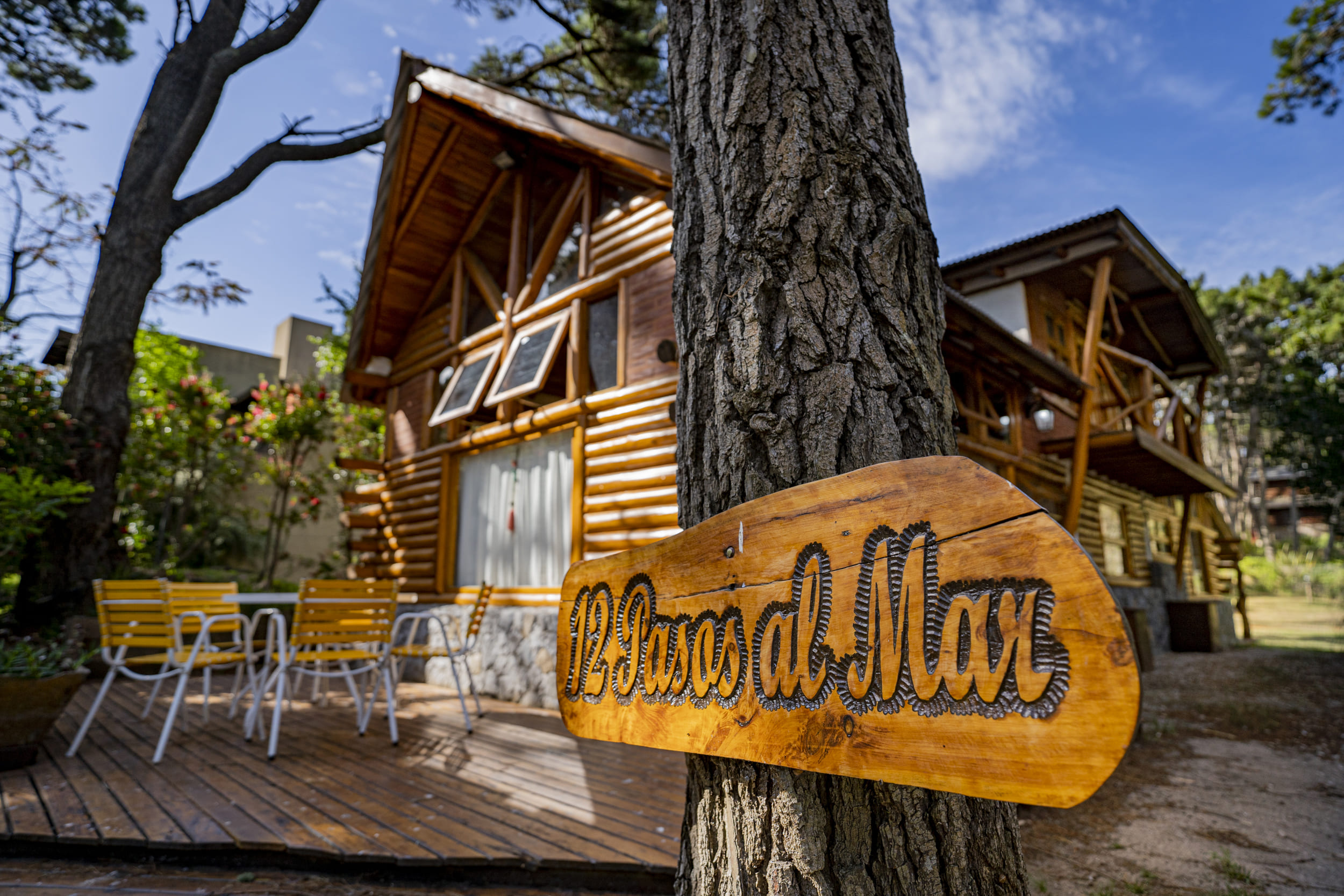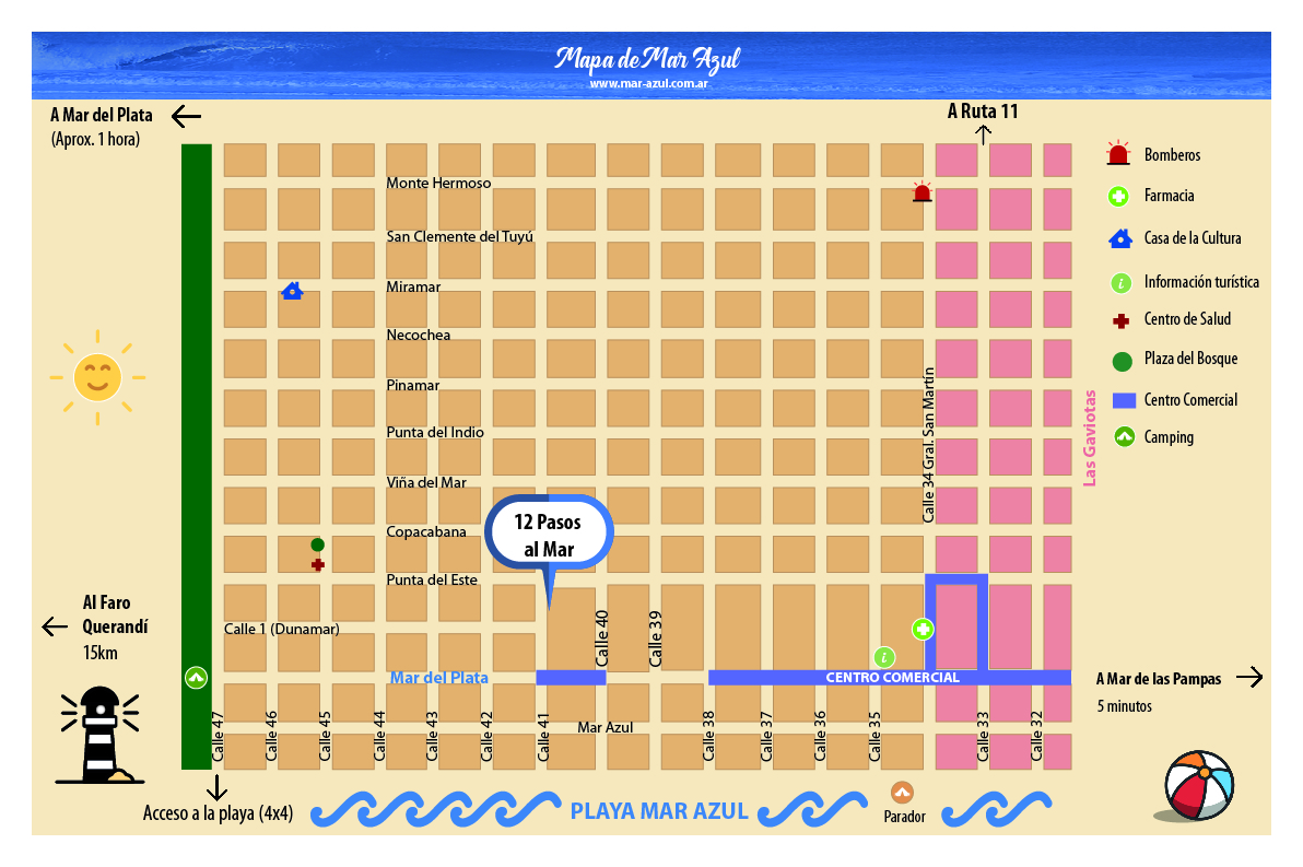 Cabañas 12 Pasos al Mar, ubicadas a media cuadra de la calle principal (Avenida Mar del Plata) y a dos cuadras de la playa.
