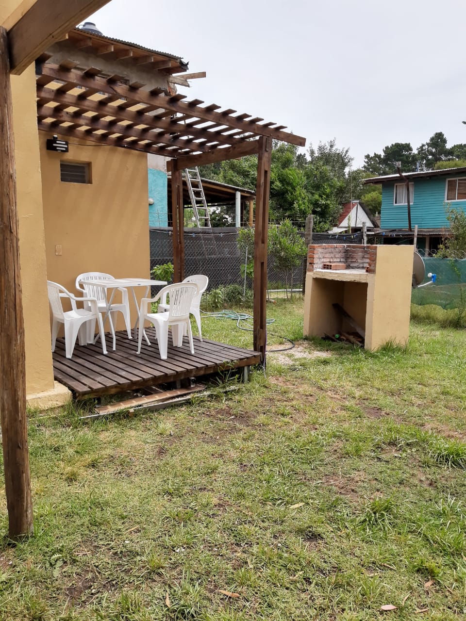 Contamos con un juego de jardín para el exterior de la cabaña,, con un amplio patio y una parrilla para compartir con amigos.