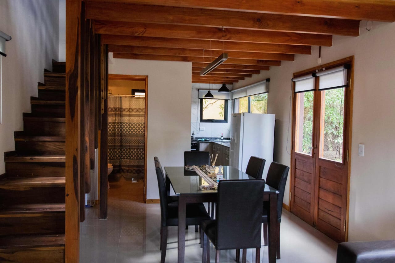 - Cocina completa, con heladera común, microondas y cocina con horno a gas