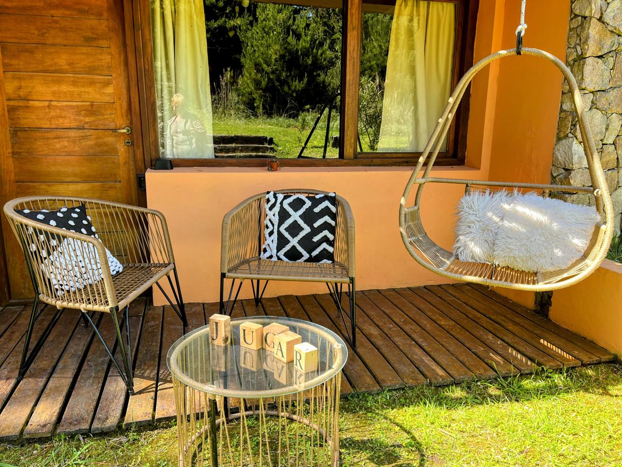 En el exterior, te espera un acogedor deck donde podrás deleitarte con un desayuno al aire libre rodeado de la exuberante vegetación circundante. Además, encontrarás todo lo necesario para tu comodidad, desde sillas y mesa hasta reposeras, hamaca paraguaya y camastros. Además, contarás con un duchador exterior para refrescarte al regresar de la playa. Para que tu estancia sea inolvidable, nuestras cabañas están equipadas con todo lo que puedas necesitar. Desde una bandeja de bienvenida hasta una parrilla individual para disfrutar de deliciosas comidas al aire libre.