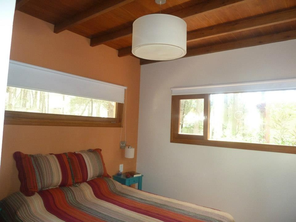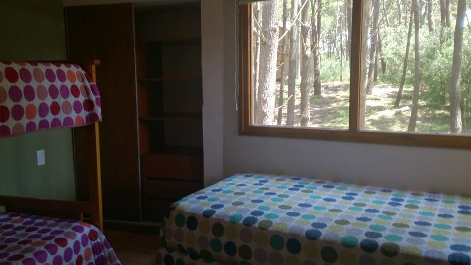 Planta alta: dos dormitorios y un baño completo con bañera. El dormitorio principal posee somier de dos plazas, ventilador de techo, dos placards y caja de seguridad. El dormitorio secundario una cama cucheta, somier de una plaza y media, ventilador de pared y dos placards. Ambos dormitorios cuentas con vista al bosque.