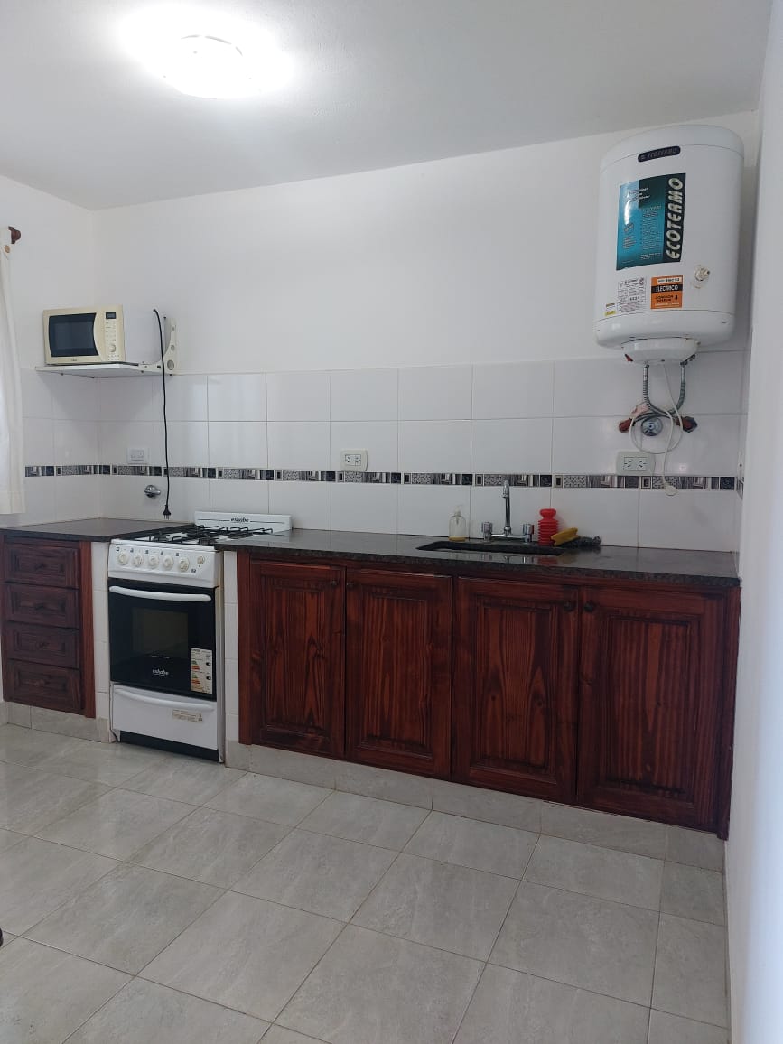 Cocina totalmente equipada con heladera con freezer, microondas, cocina, tostadora, pava y cafetera eléctrica.