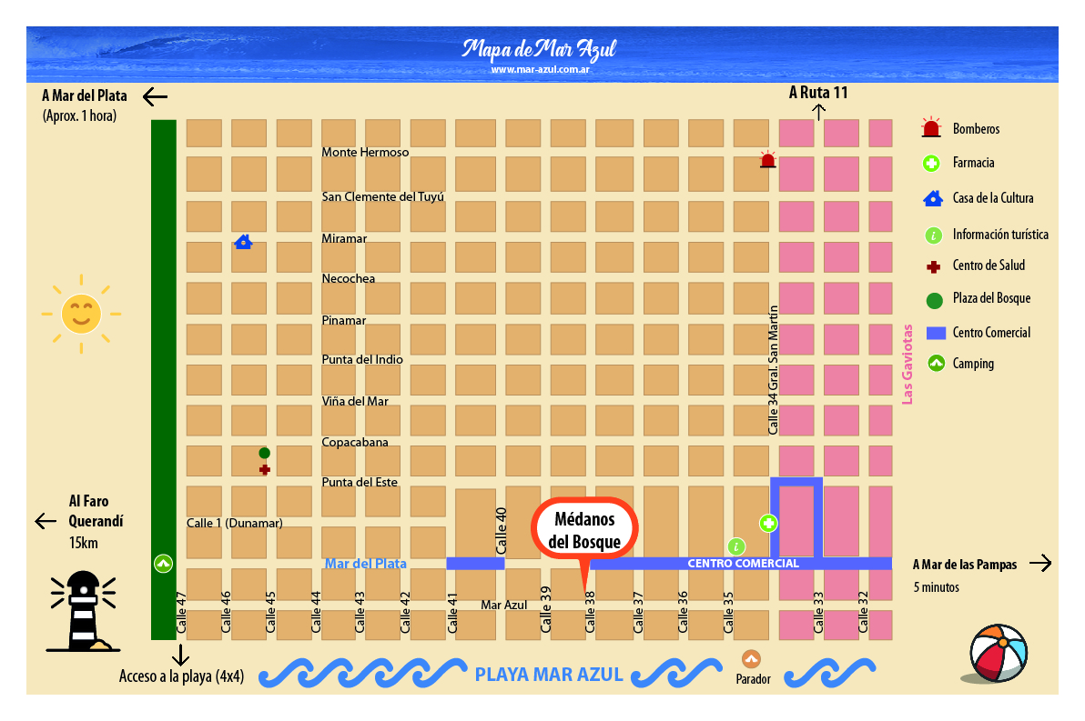 Ofrece cocina equipada con heladera, microondas, vajilla completa, ropa blanca (sábanas y acolchados), TV LCD, DVD, Wi Fi, ventiladores de techo, dos habitaciones, la principal con cama matrimonial, segundo dormitorio con dos camas simples, baño completo, deck exterior con parrilla y muebles de jardín.